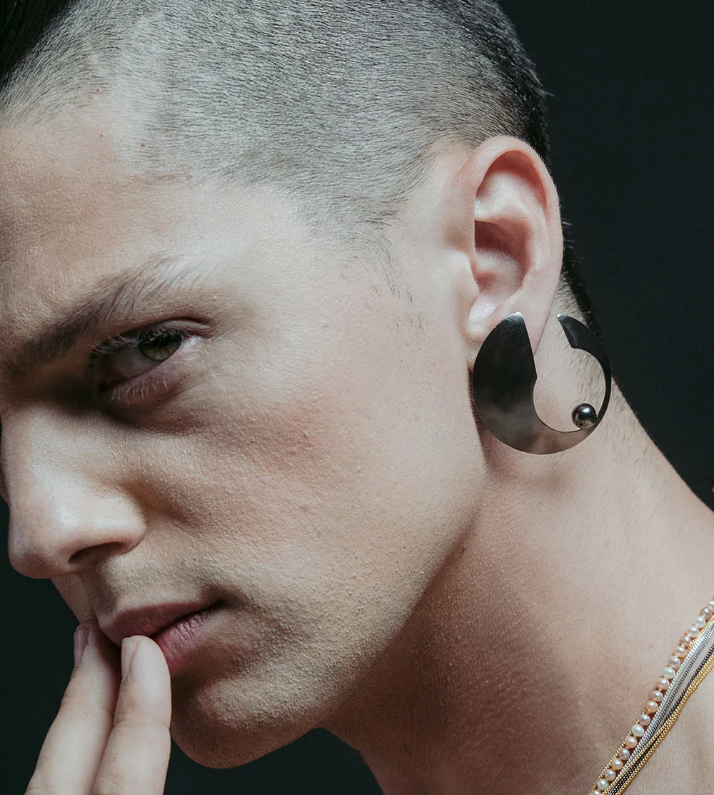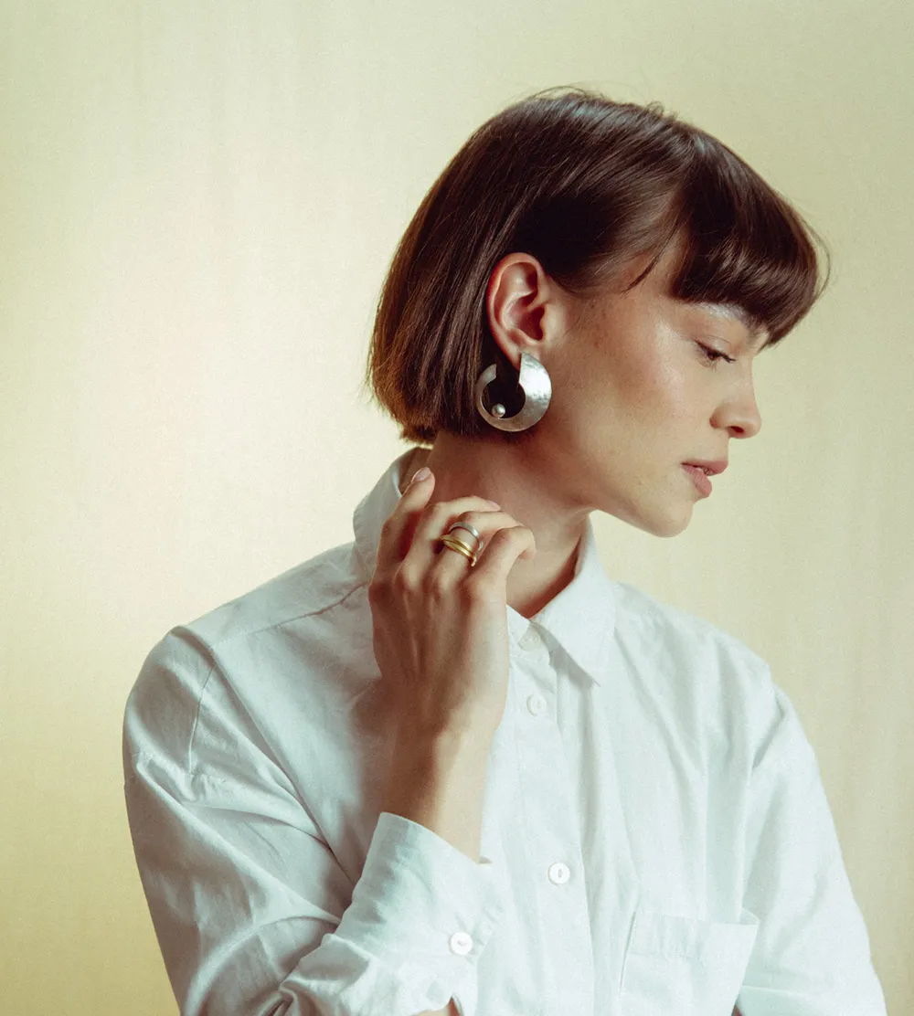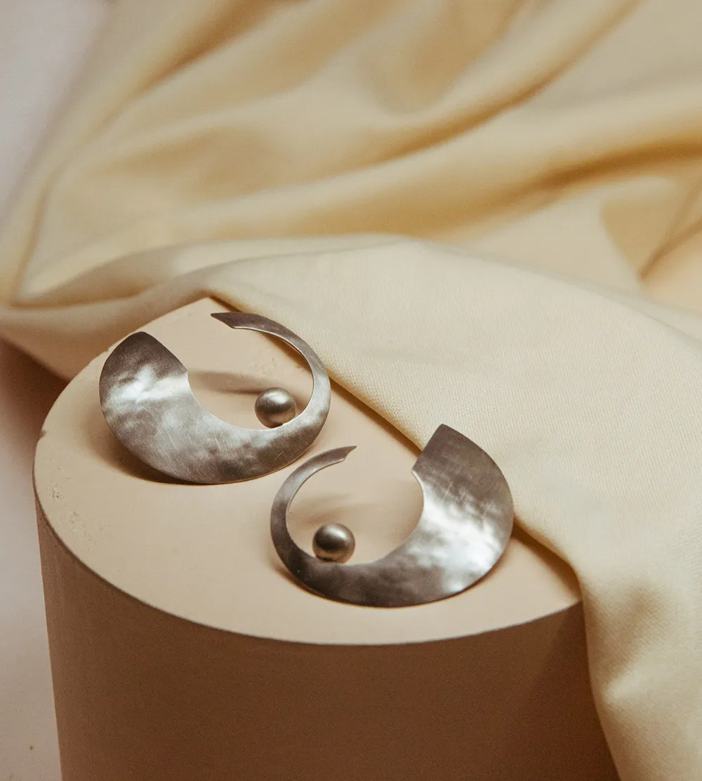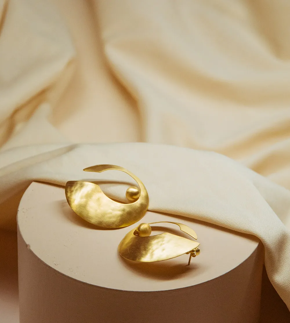Σκουλαρίκια με γλυπτική διάθεση και γεωμετρική ισορροπία. Τα Eclipse αναπαριστούν την έννοια της έκλειψης μέσα από δύο έντονες καμπύλες που αγκαλιάζουν το αυτί. Ένα κόσμημα με έντονη προσωπικότητα, εμπνευσμένο από την αρχιτεκτονική φόρμα και την κοσμική συμμετρία.